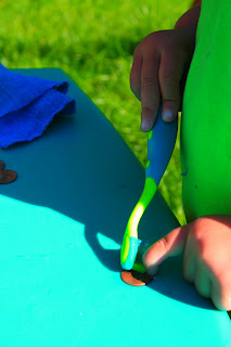 Today we did some polishing, I got the idea from The Wonder Years blogspot. We mixed some vinegar,salt and water, we also used an old toothbrush and cloth to rub and dry the pennies.